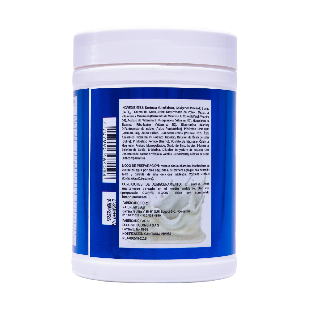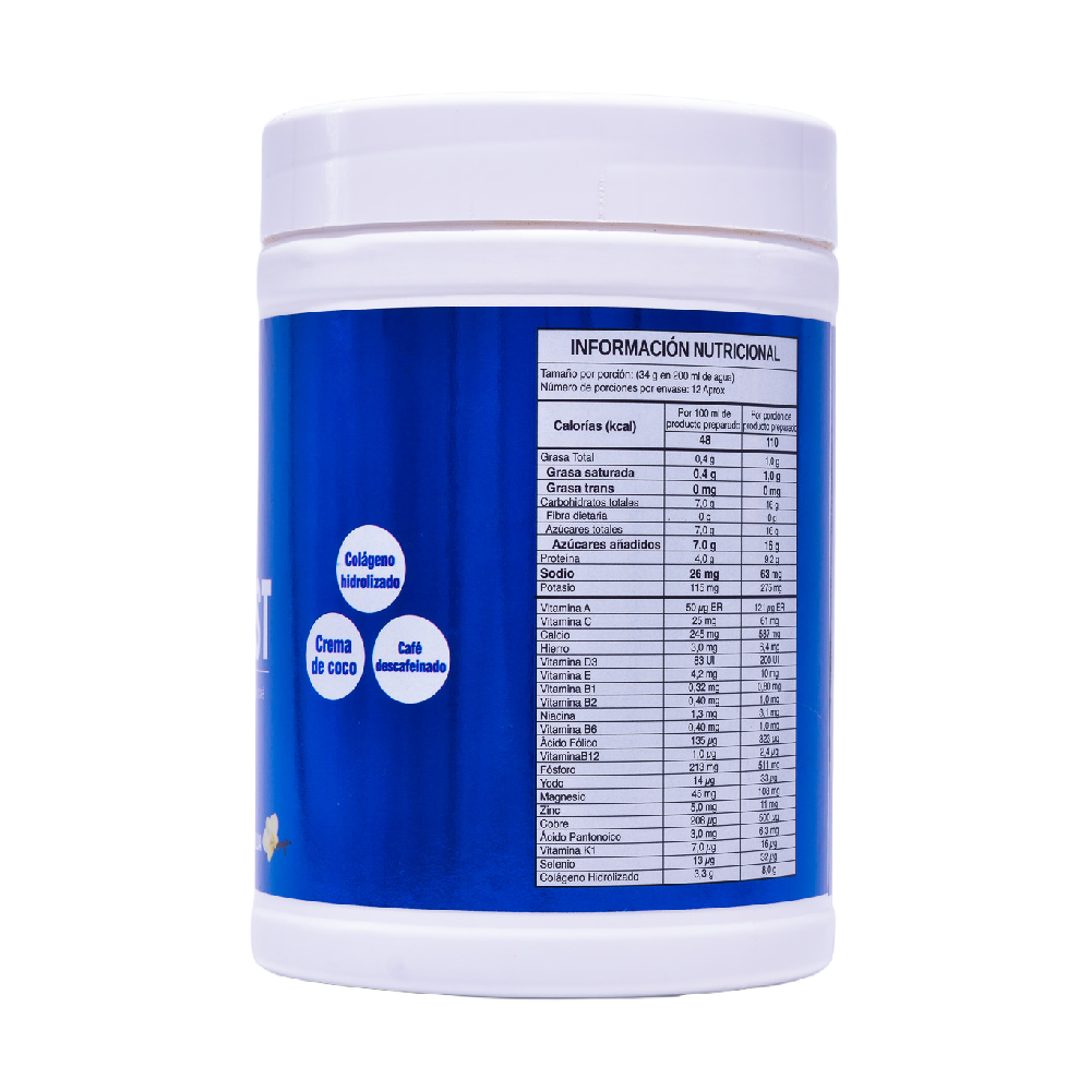 El Coffe Boost Natural Nutrition es una bebida funcional creada para quienes buscan comenzar el día con energía estable y bienestar integral. Su mezcla combina colágeno hidrolizado, crema de coco, café descafeinado, vitaminas y minerales esenciales. Gracias a esto, aporta vitalidad, mejora el enfoque y complementa la nutrición diaria con una preparación rápida y deliciosa.