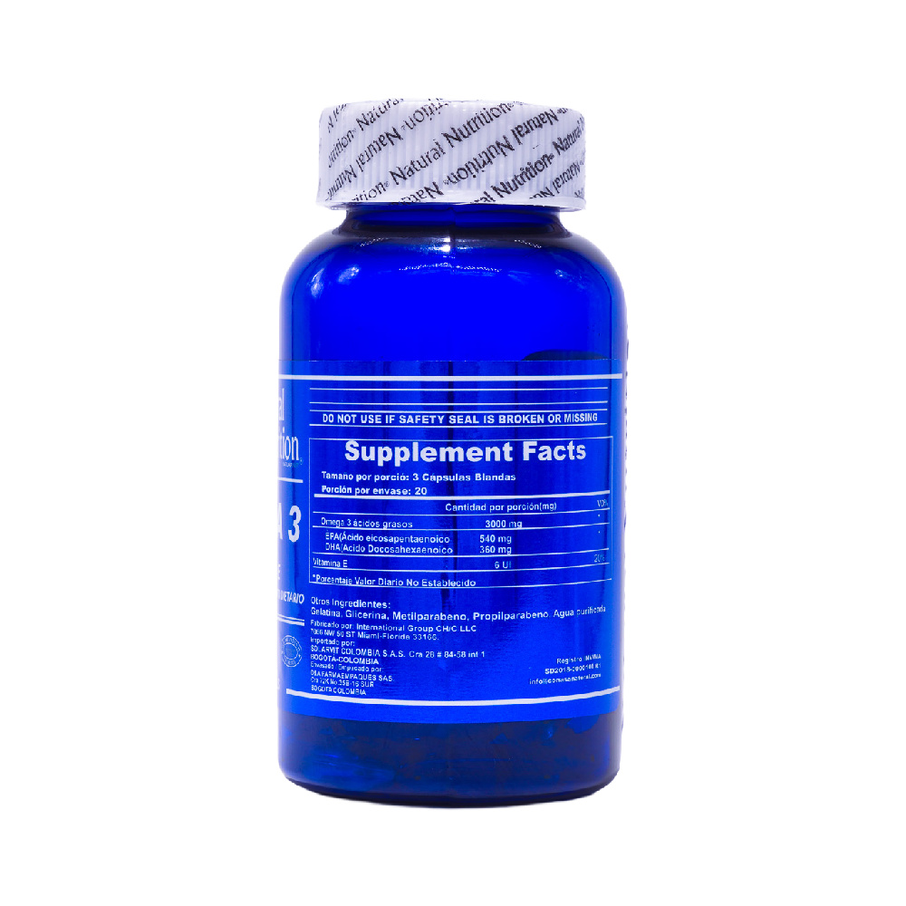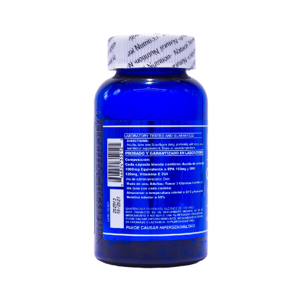 El Omega 3 + Vitamina E Natural Nutrition es una combinación de nutrientes esenciales diseñada para acompañar el bienestar general, apoyar la función cerebral y contribuir al equilibrio natural del organismo. Los ácidos grasos Omega 3 son fundamentales para diferentes procesos del cuerpo y muchas veces no se consumen en cantidades suficientes únicamente a través de la alimentación, especialmente en dietas con bajo consumo de pescado.