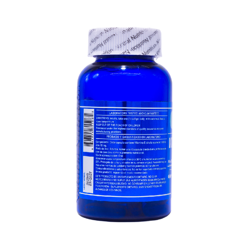 La Vitamina E 1000 UI + Zinc Natural Nutrition es una fórmula avanzada creada para acompañar el bienestar celular, la vitalidad general y el funcionamiento del sistema inmune. La Vitamina E es un nutriente liposoluble con una fuerte acción antioxidante; contribuye a la protección de las células frente al estrés oxidativo generado por los radicales libres, un proceso que puede verse influenciado por factores como la actividad física, la exposición al sol, la edad o el estilo de vida.