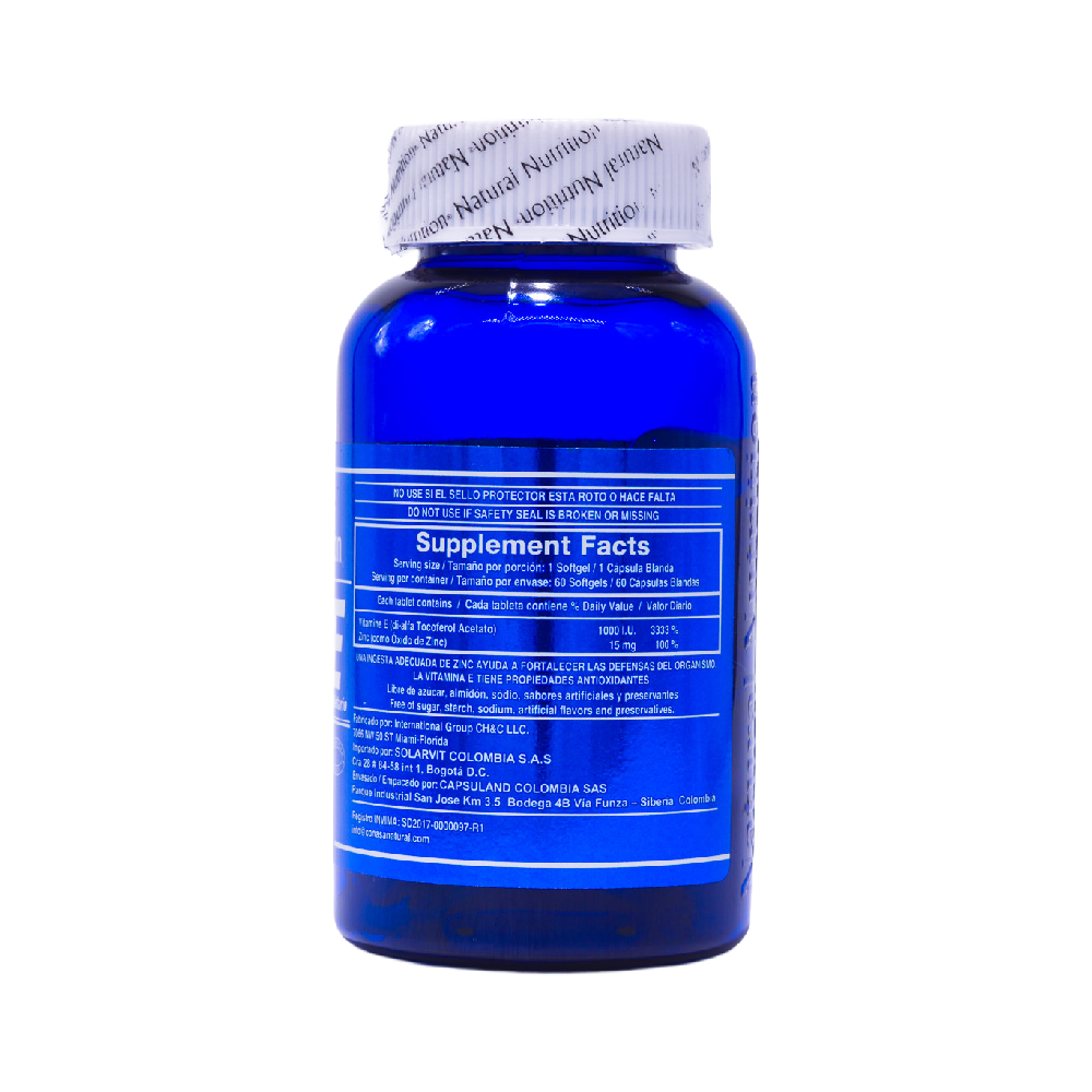 El Zinc, por su parte, es un mineral esencial que contribuye al funcionamiento normal del sistema inmune, además de participar en múltiples procesos metabólicos y celulares. Su combinación con Vitamina E potencia los beneficios antioxidantes y ofrece un soporte integral para el bienestar diario.